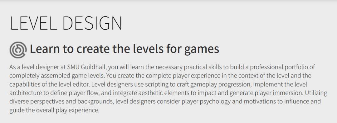 该专业设在久负盛名的Guildhall学院,提供数字游戏开发互动技术硕士课程。其最大特色在于将游戏开发拆解为:美术、关卡设计、策划制作与技术开发四大垂直方向,旨在培养游戏开发产业链中的高级专精人才。
